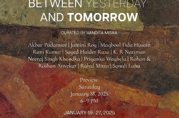 Between Yesterday and Tomorrow, explores the intersections between memory, identity and sustenance. Bringing together diverse practices and evolving trajectories of modern and contemporary Indian art. The exhibition gains further depth and resonance by seamlessly interweaving masters-Akbar Padamsee, Jamini Roy, Maqbool Fida Husain, Ram Kumar and Sayed Haider Raza; and contemporary artists-K. R Nariman, Neeraj Singh Khandka, Priyanka Waghela, Rohan & Roshan Anvekar, Rahul Mitra and Sonali Laha, further bridging the gap between past, present and future. This exhibition reflects on past through memories-personal and collective, putting the viewers in the centre of the exhibition as the artists engage with them about identity, vulnerability and resilience.
